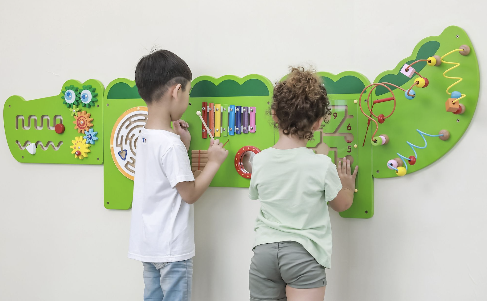 Wandspielzeuge fördern die Feinmotorik und Hand-Augen-Koordination der Kinder. Sie bieten zahlreiche Interaktionsmöglichkeiten und machen das Spielen sowohl spassig als auch lehrreich. Zudem brauchen sie wenig Platz und ziehen kein Aufräumen nach sich.