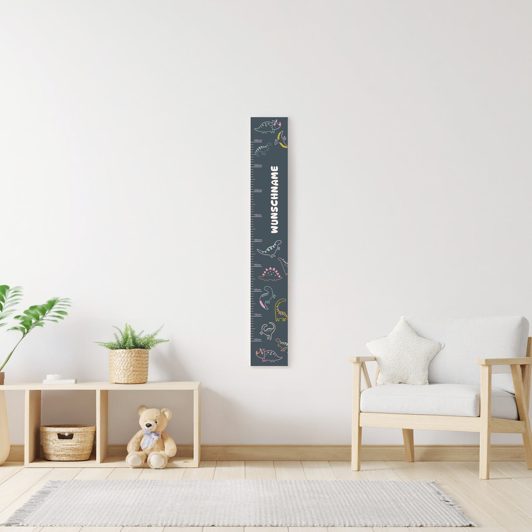 Jede Entdeckerreise ist individuell – genau wie dein Kind. Über unser Custom Studio kannst du den Namen deines Kindes direkt in das Design integrieren lassen. Die personalisierte „Dinoversum“-Messlatte ist ein perfektes Geschenk zur Geburt, zum Geburtstag oder zur Einschulung und wird über viele Jahre hinweg stolz die Wachstumsschritte deines Kindes dokumentieren.
