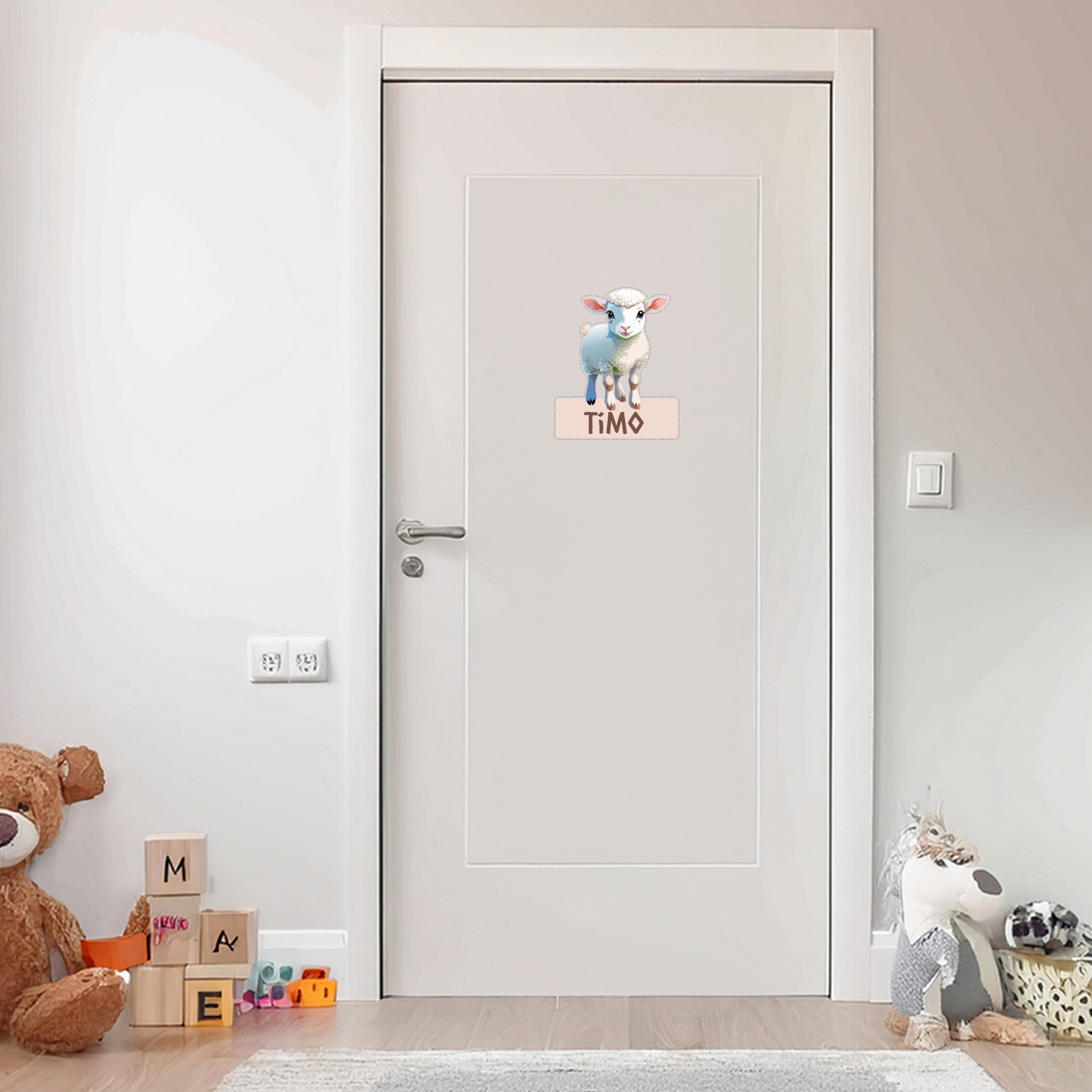 Hier wird sanft geschlummert! Mit unserem personalisierten Türschild „Schaf“ zieht Ruhe und Geborgenheit in dein Zuhause ein. Das niedliche, flauschige Schaf blickt mit seinen treuen Augen über den Namen deines Kindes und zeigt jedem Besucher: Hier ist ein Ort zum Träumen und Wohlfühlen.
